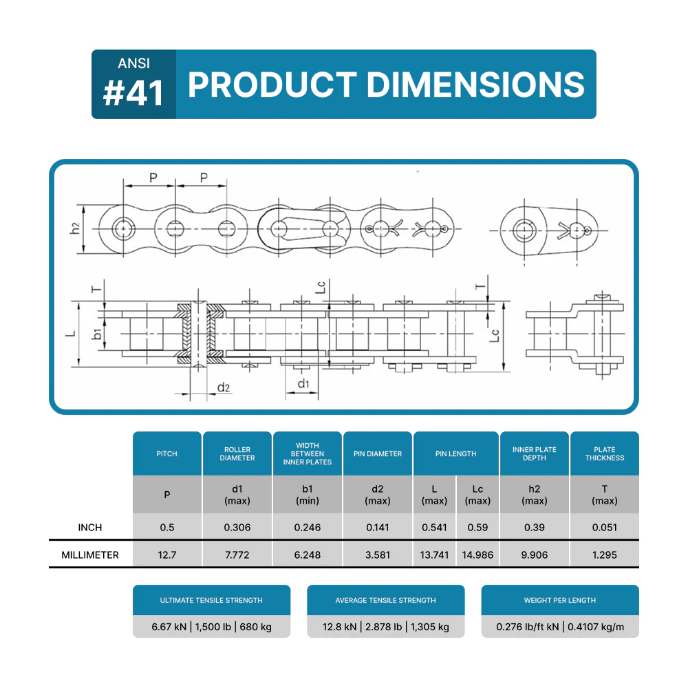 #41 Roller Chain x 3 feet + Free Connecting Link