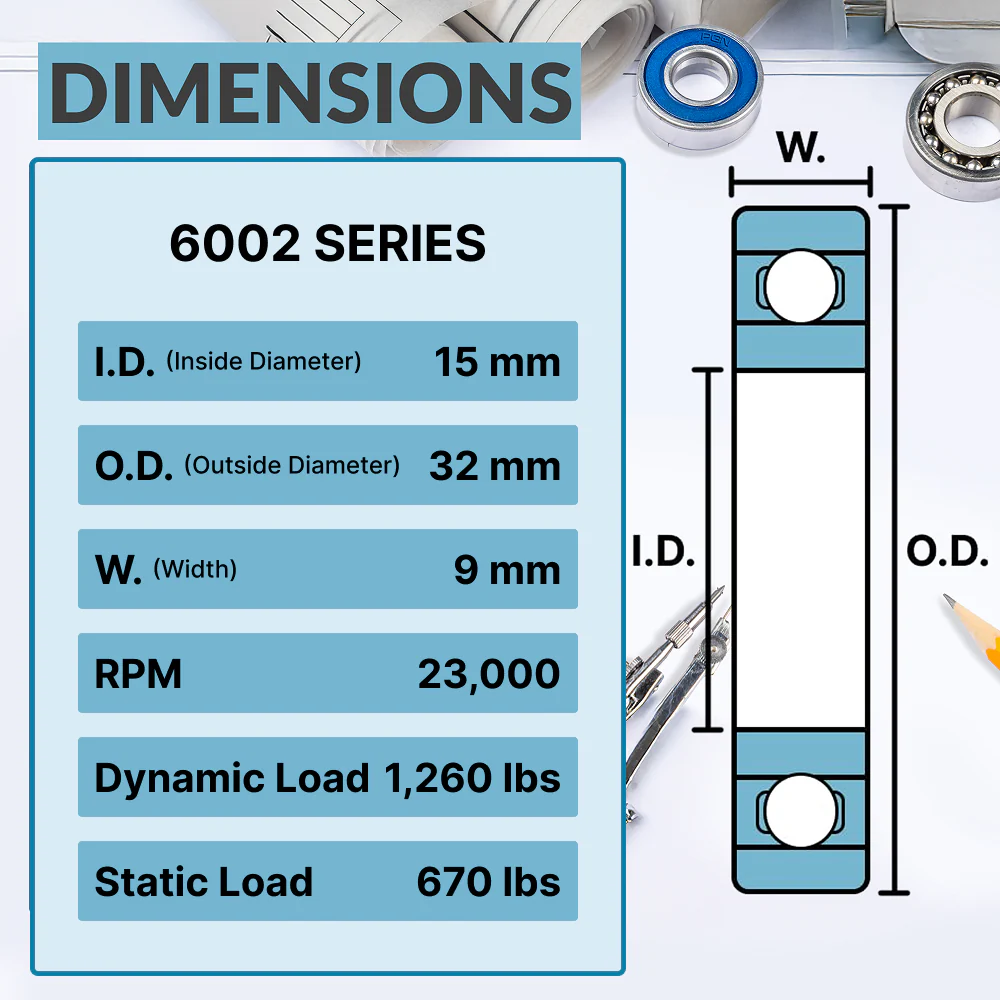 -13%6002-ZZ Ball Bearing - 15x32x9—