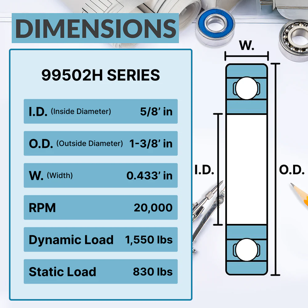 | MODEL | 99502H | IN DIAMETER (BORE) | 5/8" (15.88 mm) |